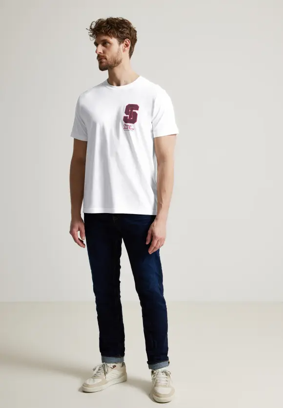 Ležérne pánske tričko Street One MEN. Na jednofarebnom štýle je potlač na hrudi skvelým pútačom, ktorý dodáva košeli štýlový vysokoškolský štýl. Klasický rebrovaný výstrih dopĺňa štýl.