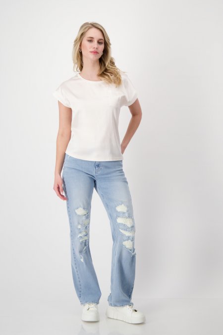 Táto elegantná mikina je vyrobená z mäkkého a pružného materiálu a zdobí ju zaväzovanie pri výstrihu a ozdobné očko.