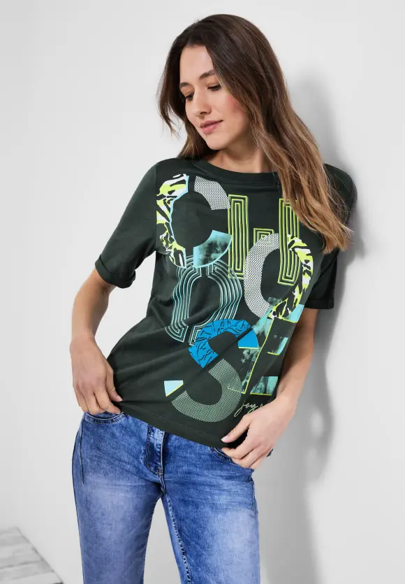 Vyberte si! Toto dámske tričko CECIL prichádza v modernej jednofarebnej farbe. Športový strih s lodičkovým výstrihom a pohodlným materiálom. Pútacom je fototlač na prednej strane, ktorá sa prejavuje v mixe vzorov.