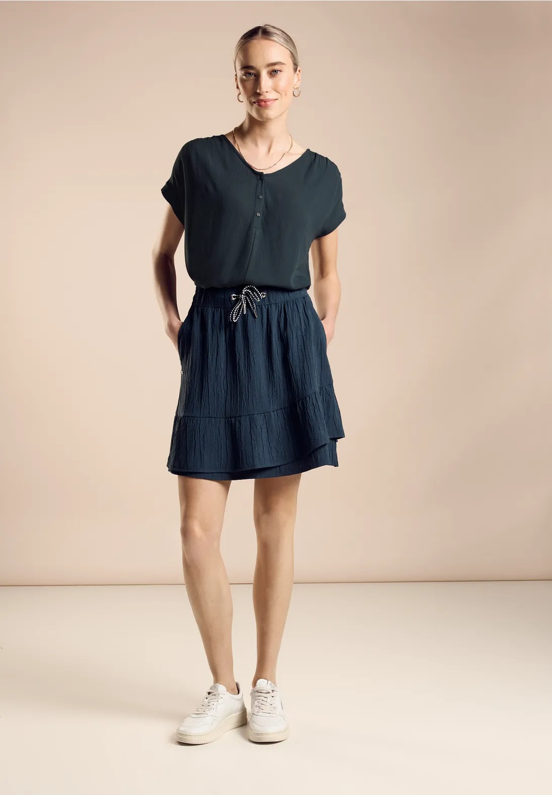Dámske tričko Street One z materiálového mixu je všestranná letná košeľa s prepracovaným dizajnom.