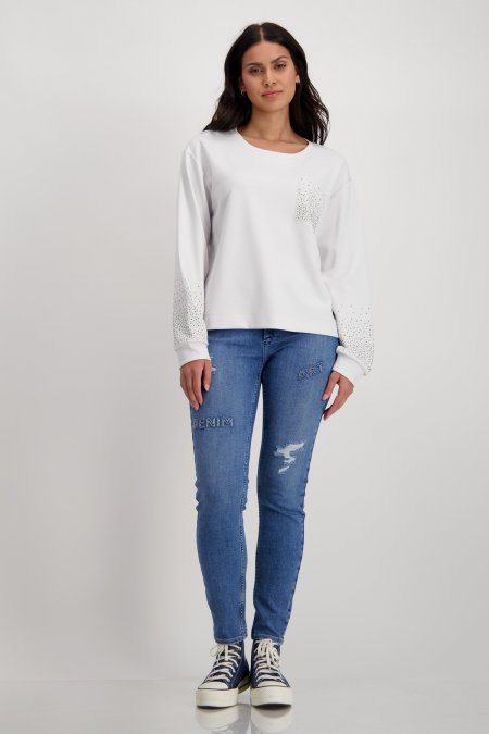 Krásna mikina s jemným dotykom a náprsným vreckom s trblietavými kamienkovými detailmi.