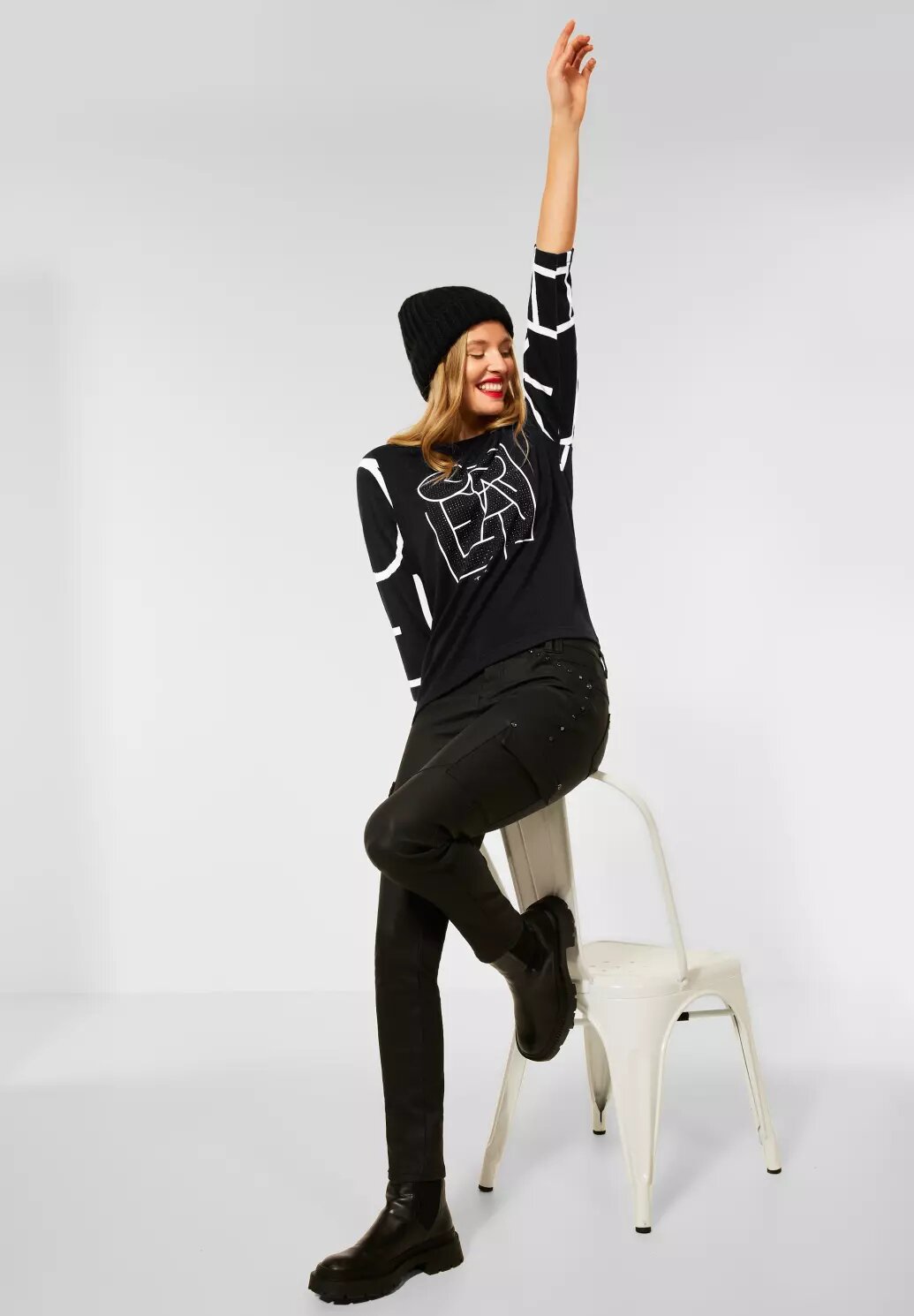 Ležérna žakárová košeľa s 3/4 rukávmi od Street One zaujme svojou štýlovou potlačou. Nápis na prednej strane je zakončený lesklými nitmi. Okrúhly výstrih šikovne dotvára vzhľad.