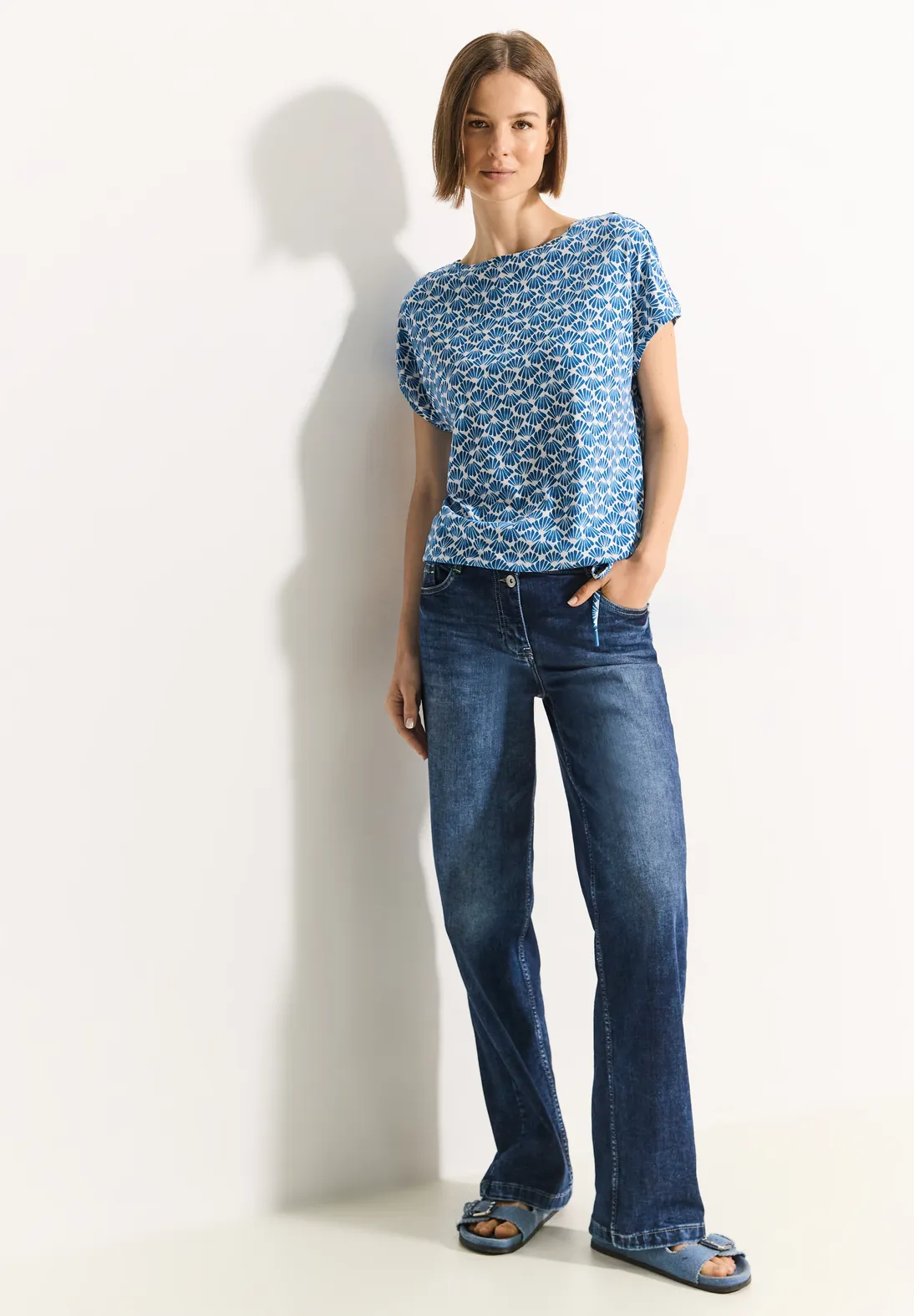 Vzdušné dámske tričko s potlačou od CECIL je letná košeľa s elegantným lodičkovým výstrihom a sťahovacím lemom pre individuálne prispôsobenie. Vzdušné rozparky na pleciach dodávajú košeli vzdušný nádych a zaisťujú dodatočnú voľnosť pohybu. Vyrobené z mäkkej zmesi bavlny a modalu, je pohodlné na nosenie v teplých dňoch.