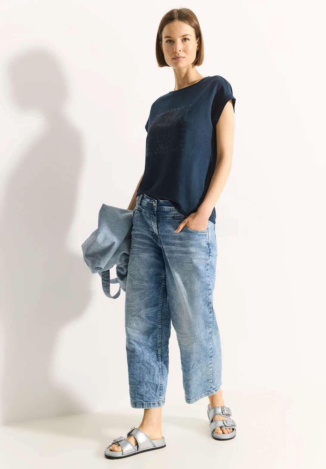 Dámske tričko s prednou potlačou CECIL je trendové tričko s krátkym rukávom, výstrihom a výstrihom pri krku pre moderný nádych.
