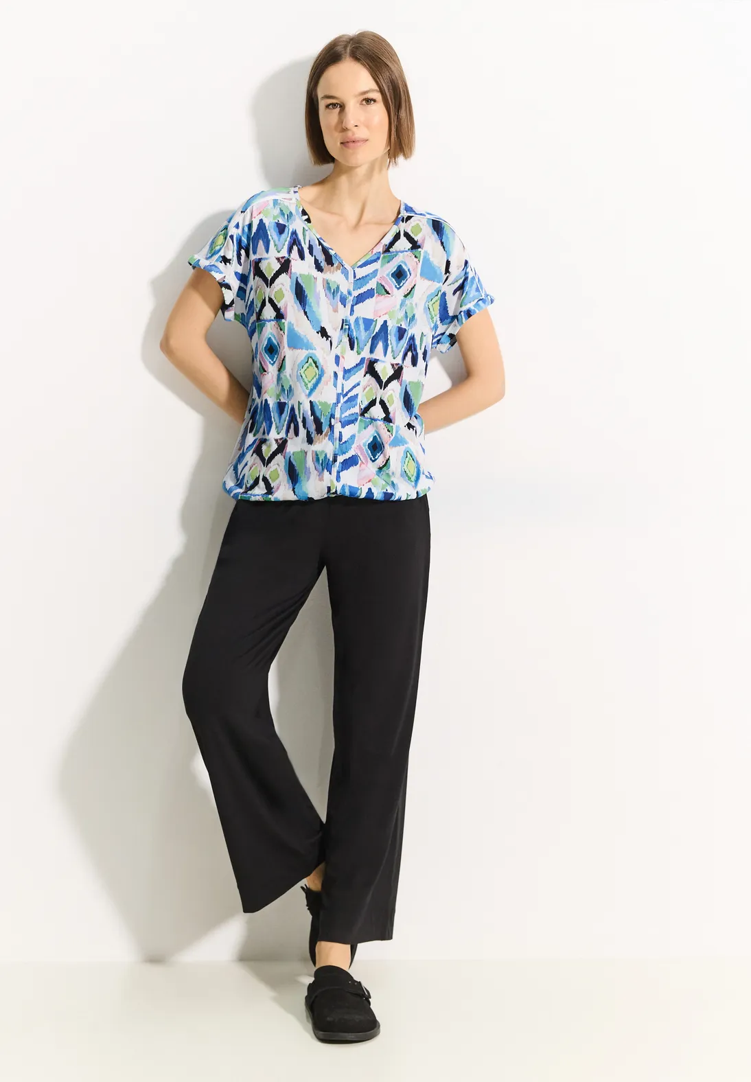 Dámske tričko s potlačou CECIL sa vyznačuje živým dizajnom a má trendy výstrih do V a elastický pás.