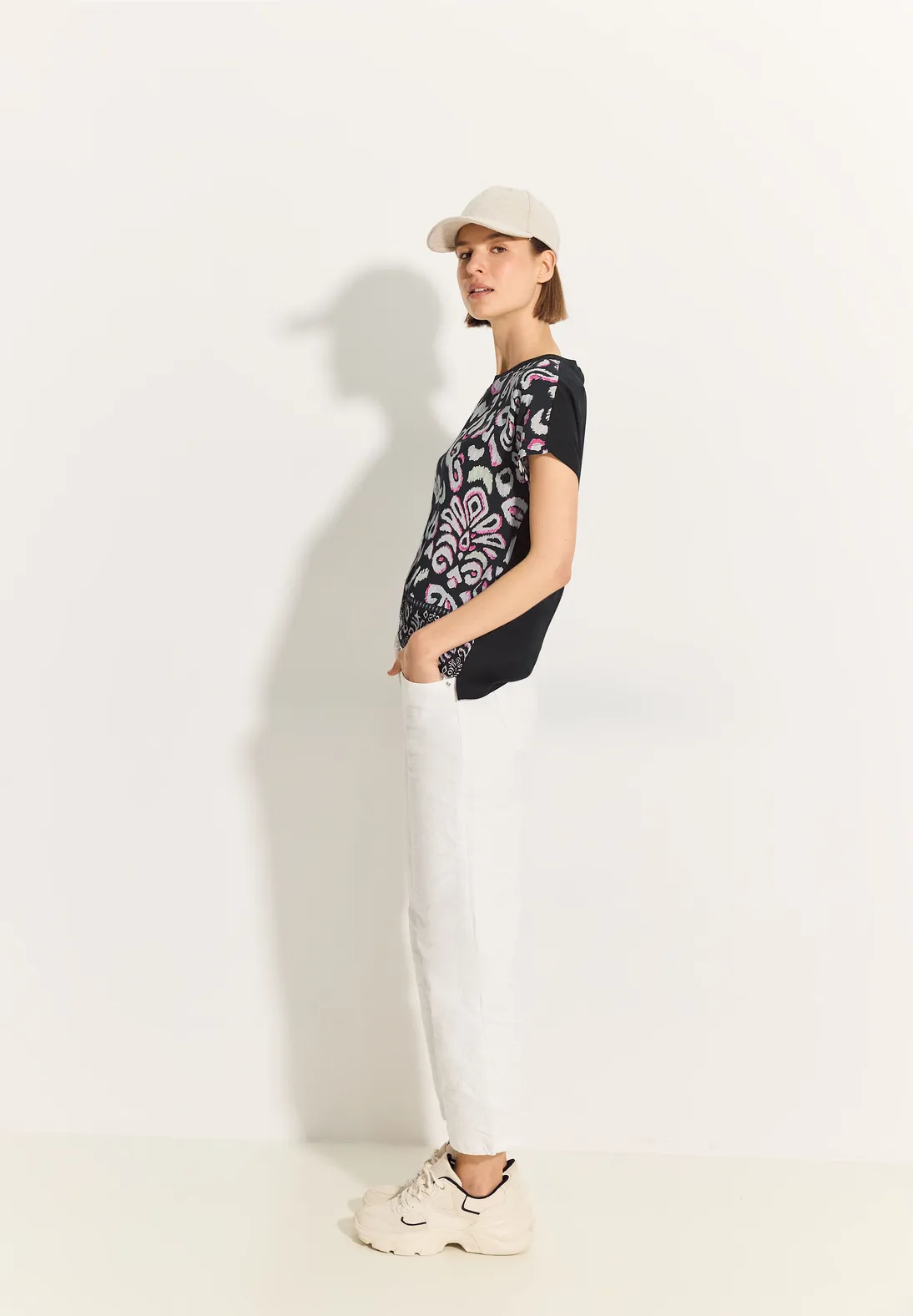 Dámske tričko CECIL predstavuje atraktívnu kombináciu materiálov a je to všestranná košeľa s krátkym rukávom a ozdobným rebrom na golieri.