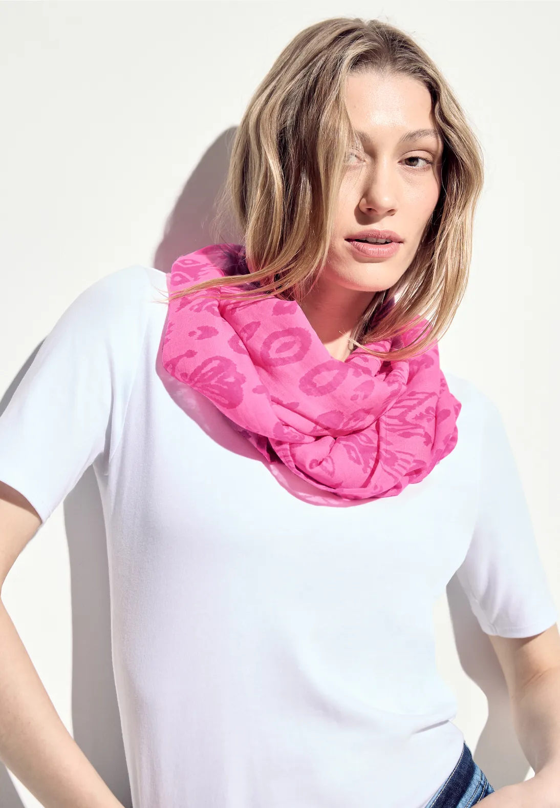 Slučkový šál pre ženy od CECIL je tubový šál s ornamentálnym vzorom vo vypaľovacom vzhľade.
